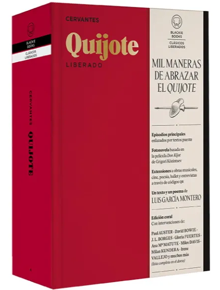 Don Quijote y Sancho Panza no viven solo en el libro. En los más de cuatrocientos años transcurridos desde su publicación, han frecuentado la música y la pintura, el cine y la publicidad, el teatro y la poesía y la cultura popular. El Quijote Liberado incluye numerosos recursos audiovisuales (fragmentos de películas, músicas, poesías, etc.) que se activan mediante códigos QR. UN QUIJOTE DE CINE. En 1957, el director soviético de origen ucraniano Grigori Kózintsev rodó la que se considera la mejor versión Fílmica del Quijote, con Nikolai Cherkasov (el Iván el Terrible de Eisenstein) en el papel protagonista. Fue la primera película soviética que pudo estrenarse en España, en 1967. La película completa está accesible desde el libro mediante código QR. Además, de ella hemos extraído los episodios más célebres de la obra y los proponemos en formato fotonovela. CON INTERVENCIONES DE: Margaret Atwood, Erich Auerbach, Paul Auster, Harold Bloom, Roberto Bolaño, Jorge Luis Borges, David Bowie, Luis Buñuel, Italo Calvino, Bill Clinton, Coldplay, Miles Davis, Arthur Dobb, Fiódor Dostoyevski, Jorge Drexler, Rocío Dúrcal, Elsa Fernández-santos, Gloria Fuertes, Luis García Montero, Terry Gilliam, Julio Iglesias, Franz Kaìa, Grigori Kózintsev, Milan Kundera, Ursula K. Le Guin, Daniel López Valle, Claudio Magris, Ana María Matute, Antonio Muñoz Molina, Vladimir Nabokov, Eiichiro Oda, Cristina Peri Rossi, Rosalía, José Saramago, Martín Scorsese, Joan Manuel Serrat, Homer Simpson, Gonzalo Torrente Ballester, Jeff Tweedy, Miguel De Unamuno, Irene Vallejo, Manuel Vázquez Montalbán, Orson Welles, Don Winslow, Virginia Woolf Y María Zambrano.