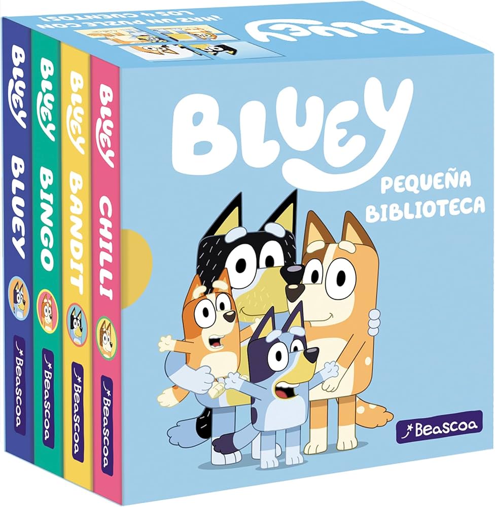 Llega la Pequeña biblioteca de Bluey, una fantástica colección de cuatro mini-libros de cartón perfecta para pequeños lectores de 0 a 3 años.