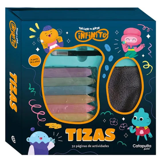 Tizas : Jaicu, Sine, Oni y Pop acompañarán a los pequeños artistas a descubrir las infinitas posibilidades de las tizas. Bastará con hacer trazos sencillos, dibujos y tramas para crear composiciones simples y otras más complejas, como una fiesta luminosa o un amanecer mágico. >> Este libro incluye 6 tizas de colores, 1 paño para borrar, 1 aplicador de gomaespuma y 6 siluetas de cartón.